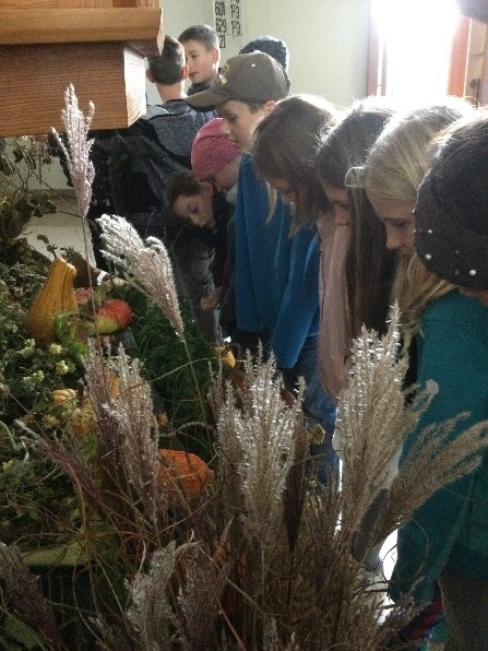 Am Dienstag, 04.10.2022 machten sich die Schüler der dritten und vierten Klasse der Theodor-Heuss- Grundschule und der KOOF des SBBZ Mariaberg im Rahmen des katholischen und evangelischen Religionsunterrichts auf den Weg nach Hausen. Ziel war die Sankt Galluskirche, in der ein reicher Erntedankaltar aufgebaut war. Die Schülerinnen und Schüler freuten sich an der Vielfalt der Erntegaben, die wunderbar ausgestellt waren. Nachdem die Kinder ein Lied gesungen hatten, in dem sie Gott für die Ernte dankten, machten sie sich auf den Weg zurück zur Schule.