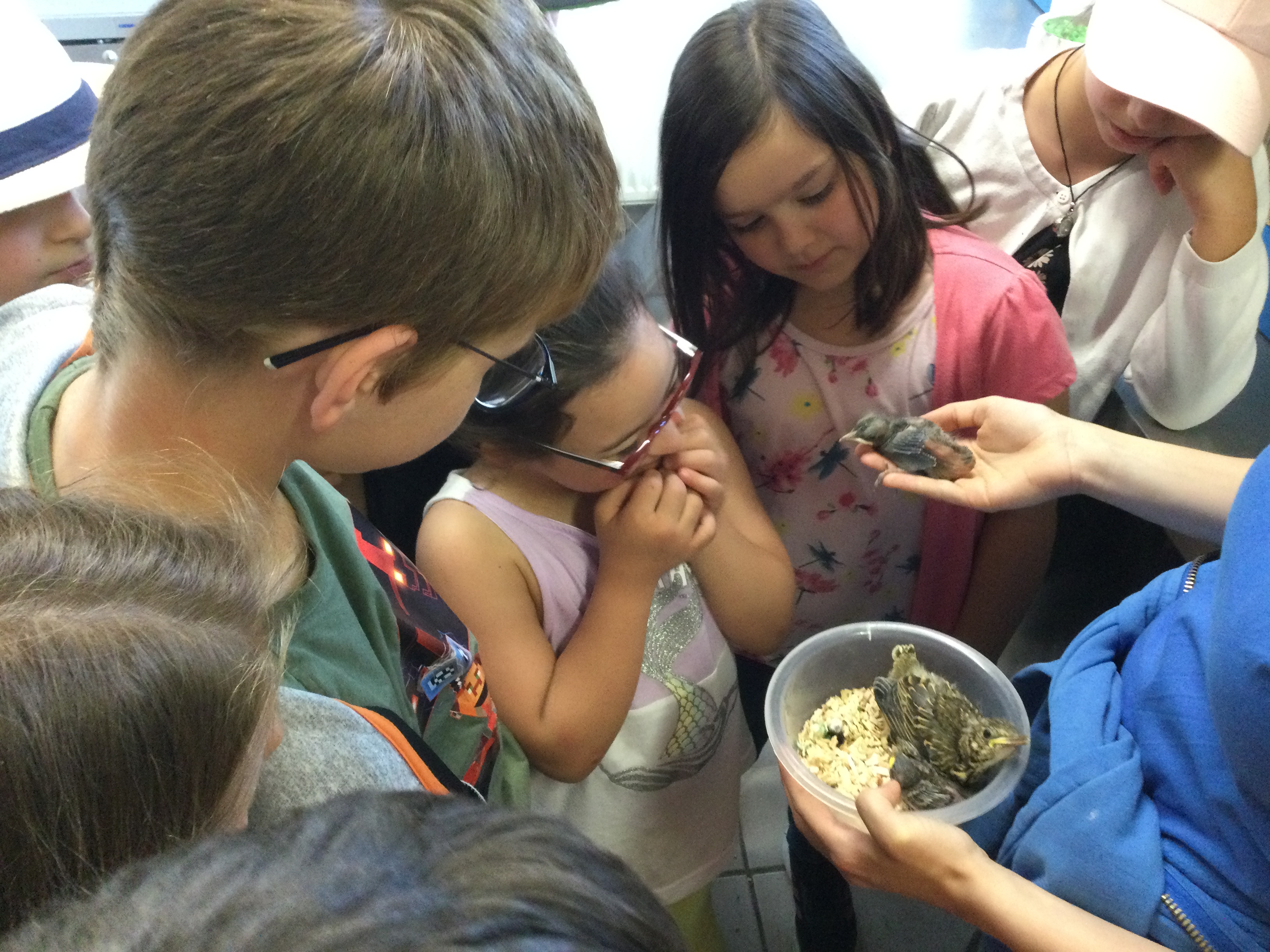 Am 29. Juni 2023 fuhr die Grundschule Mägerkingen mit dem Bus nach Mössingen zum NABU Vogelschutzzentrum. Wir wurden um 8:15 Uhr mit dem Bus an der Schule abgeholt. Nach ungefähr 20 Minuten Fahrt kamen wir beim Vogelschutzzentrum an. Zuerst durften wir uns mit unserem Vesper stärken. Dann wurden wir in sechs Gruppen eingeteilt. In unseren Gruppen begannen wir mit den Stationen zum Thema „Vögel“. Zum Beispiel sollten wir mit einer Zange, die den Schnabel eines Vogels darstellen sollte, Nester bauen. Wir transportierten Eier über Berge und Meere, fingen Futter aus der Luft wie Mauersegler und zählten gut getarnte Vögel. Mit einem Fernglas beobachteten wir Vögel, und wir beantworteten Wissensfragen. Zwischendurch legten wir eine Trinkpause ein. Im Futterhaus gab es viele kleine Vögel und uns wurde gezeigt wie man sie füttert. Danach durften wir zu zwei jungen Störchen in die Vogelvoliere. Als wir alle Stationen erledigt hatten, trafen wir uns im Saal für die Auflösung. Danach fuhren wir mit dem Bus zurück in die Schule. Es war ein schöner Tag.